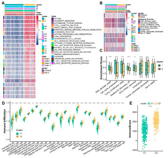 2.3. Cell Infiltration and Biological Characteristics of Both Subtypes