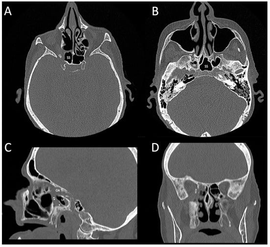 - Garin, A.; Manfredi, L.; Luscan, R.; Nowak, C.; Nevoux, J.; Papon, J.-F. Sinusitis Posteriores: Esfenoiditis y Esfenoetmoiditis Posteriores. EMC Otorrinolaringol. 2017, 46, 1–8. [Google Scholar] [CrossRef]