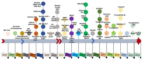 Timeline of the advancement of sequencing technology.
