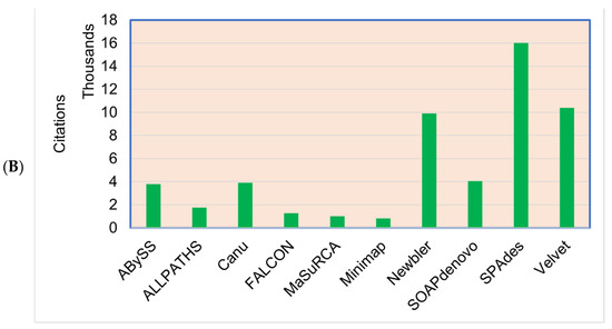 (A) The most commonly used genome assemblers for the plant genome assemblies’ projects and the (B) citations of the assemblers.