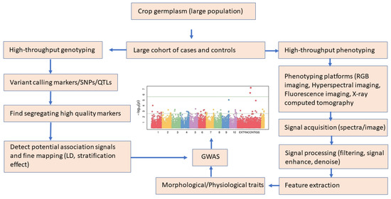 - Xiao, Q.; Bai, X.; Zhang, C.; He, Y. Advanced High-Throughput Plant Phenotyping Techniques for Genome-Wide Association Studies: A Review. J. Adv. Res. 2022, 35, 215–230. [Google Scholar] [CrossRef]