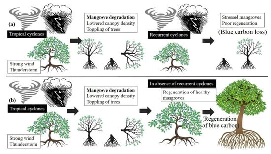- Buitre, M.J.C.; Zhang, H.; Lin, H. The mangrove forests change and impacts from tropical cyclones in the Philippines using time series satellite imagery. Remote Sens. 2019, 11, 688. [Google Scholar] [CrossRef]