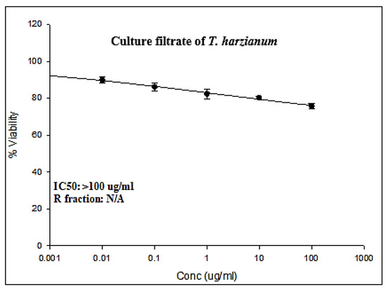- Abd El-Rahman, A.A.E.-M.; Abd El-Aziz ElShafei, S.M.; Ivanova, E.V.; Fattakhova, A.N.; Pankova, A.V.; El-Shafei, M.A.E.-A.; El-Morsi, E.-M.A.E.-F.; Alimova, F.K. Cytotoxicity of Trichoderma spp. cultural filtrate against human cervical and breast cancer cell lines. Asian Pac. J. Cancer Prev. 2014, 15, 7229–7234. [Google Scholar] [CrossRef] [PubMed]
