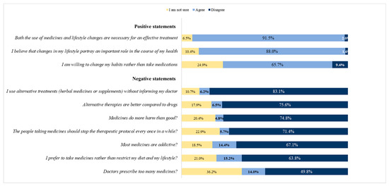 Regarding the patients’ general views and beliefs about their therapeutic protocol, participants were asked to indicate their level of agreement (Agree/I am not sure/Disagree) with a set of 10 statements, comprising both negative and positive perspectives: