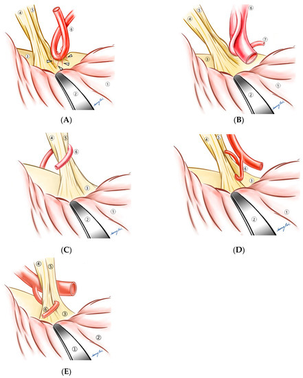 - Masuoka, J.; Matsushima, T.; Kawashima, M.; Nakahara, Y.; Funaki, T.; Mineta, T. Stitched sling retraction technique for microvascular decompression: Procedures and techniques based on an anatomical viewpoint. Neurosurg. Rev. 2011, 34, 373–380. [Google Scholar] [CrossRef]