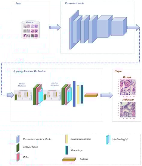 Ashurov, A.; Chelloug, S.A.; Tselykh, A.; Muthanna, M.S.A.; Muthanna, A.; Al-Gaashani, M.S.A.M. Improved Breast Cancer Classification through Combining Transfer Learning and Attention Mechanism. Life 2023, 13, 1945. https://doi.org/10.3390/life13091945