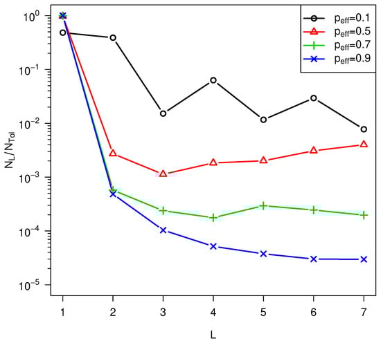 As in [7,26], we assign to any ‘polymer’ (string) of length l an energy , where is a real number which is the bonding energy between two monomers. These ‘bonding energies’ determine the thermodynamic driving force for bond formation and are negative in the application to peptide bonds. They are assumed to be the same for pairs of all types of monomers and are to be distinguished from the activation energies for bond breaking discussed below. Monomers are assigned ‘types’ of which there are b, an integer. For proteins, , for nucleic acids, , and in our simulations, . The total number of possible polymeric species (distinct series of ’types’) of length L is then . The total energy E of any population of polymers, in which is the number of polymers of species m, is . Here, is the same set of macrovariables used in [7,25,27]. The total number of polymers N is . The parameter is defined as , where T is the absolute temperature, which we assume to be positive so that, as we take , the relevant parameter .