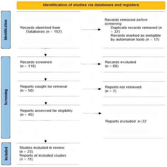 The selection process for this meta-analysis followed a comprehensive and rigorous approach to ensure the inclusion of relevant and high-quality studies. The initial search yielded a large number of articles, which were screened based on the inclusion and exclusion criteria. This screening process helped eliminate irrelevant studies and duplicates, thus resulting in a reduced number of records. The remaining records underwent further assessment for eligibility, with full-text articles obtained for those meeting the inclusion criteria. The assessment of full-text articles ensured that the studies included in this meta-analysis met the predetermined criteria and were of high quality. In total, 23 studies were included in the narrative review, and 18 were included in the meta-analysis. The studies included in this meta-analysis were selected based on their relevance to the research question, study design, and quality (Figure 1). This rigorous approach minimizes the risk of bias and ensures that only relevant studies are included in this meta-analysis, thus enhancing the validity and reliability of the findings.