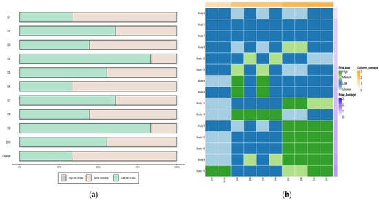 (a) Risk of bias analysis heatmap for each study; (b) Summary of risk of bias.
