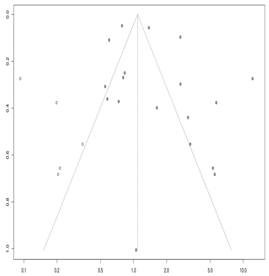 Based on the visual inspection of the funnel plot (Figure 4), Egger’s p-value of 0.8107, and Begg’s test p-value of 0.4717, there was no evidence of publication bias in this meta-analysis. Egger’s test is a statistical method used to detect publication bias by evaluating the relationship between the effect size and standard error. On the other hand, Begg’s test is a non-parametric rank correlation test that assesses the correlation between the effect size and its variance. A non-significant p-value for both tests suggests that publication bias is unlikely to be a significant factor affecting the results of this meta-analysis. However, it is essential to note that these tests have low power, mainly when the number of studies included in the analysis is small, and other sources of bias, such as selective reporting, cannot be completely ruled out.