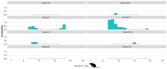 Apodemus mice. Moreover, there was no difference in absolute diurnal availability with respect to the detection or non-detection of nocturnal predators in bank voles as well (W = 306.50,