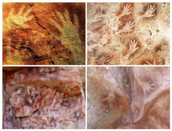 - Etxepare, R.; Irurtzun, A. Gravettian hand stencils as sign language formatives. Philos. Trans. R. Soc. B Biol. Sci. 2021, 376, 20200205. [Google Scholar] [CrossRef] [PubMed]