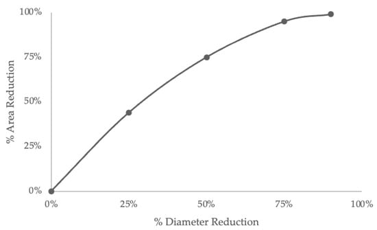Graph illustrating the relationship between area reduction and diameter reduction in a completely concentric stenosis.