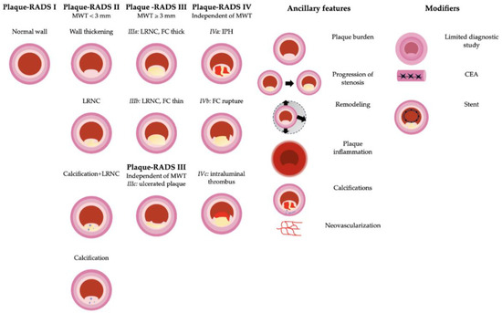 - Saba, L.; Cau, R.; Murgia, A.; Nicolaides, A.N.; Wintermark, M.; Castillo, M.; Staub, D.; Kakkos, S.; Yang, Q.; Paraskevas, K.I.; et al. Carotid Plaque-RADS, a Novel Stroke Risk Classification System. JACC Cardiovasc. Imaging 2023, S1936-878X(23)00431-X. [Google Scholar] [CrossRef]