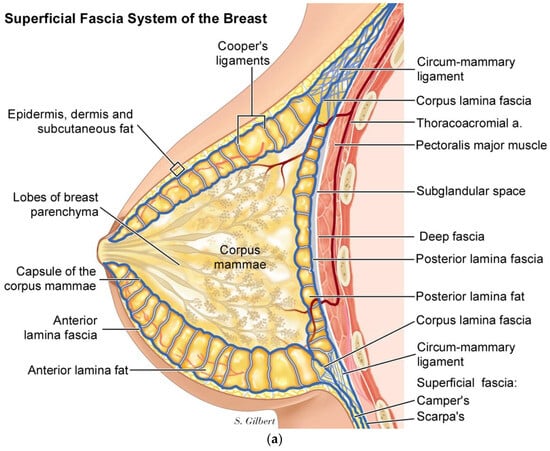 In the breast, we have published a superficial fascia system paradigm that includes- moving from superficial to deep, which is an anterior layer of fascia and fat, located just below the skin and subcutaneous fat, followed by the corpus mammae layer, which is contained within a collagen pseudo-capsule, and then a third layer of posterior lamella fat and fascia [