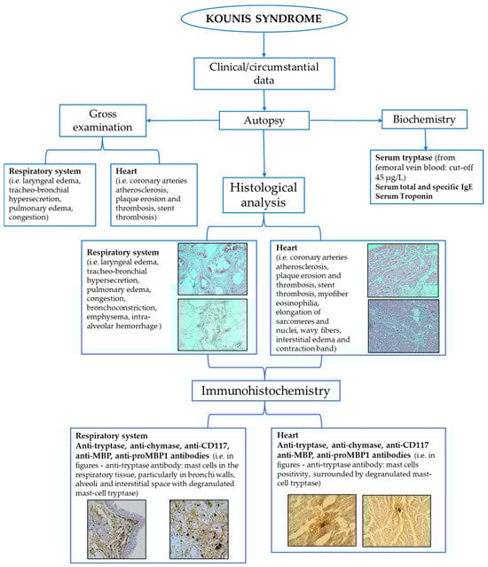 A schematic summary of the main investigations to reach the postmortem diagnosis of Kounis syndrome is reported in Figure 2.