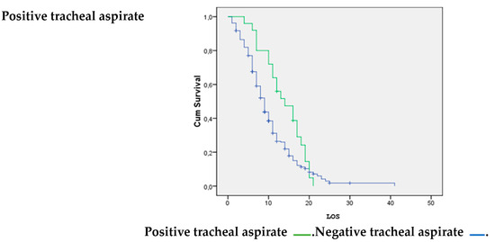 Patients without a positive tracheal aspirate were significantly more likely to survive than patients with bacterial superinfection (p = 0.036); see Figure 4.