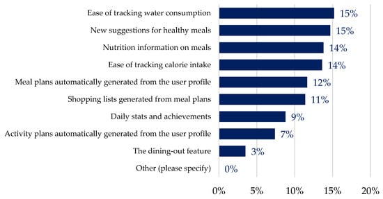 Ranked distribution (percentage in total) of app features supporting meal adherence (more than one answer could apply).