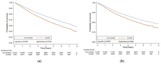 | Non-smokers | 15,943 | 3738 (23.45) | Ref. | Ref. | 1954 (12.26) | Ref. | Ref. | ||||