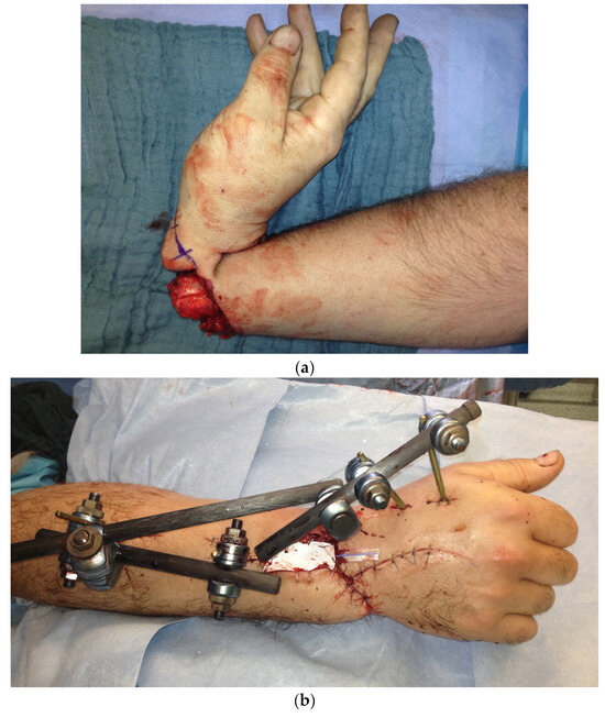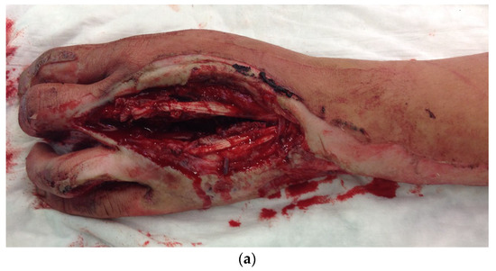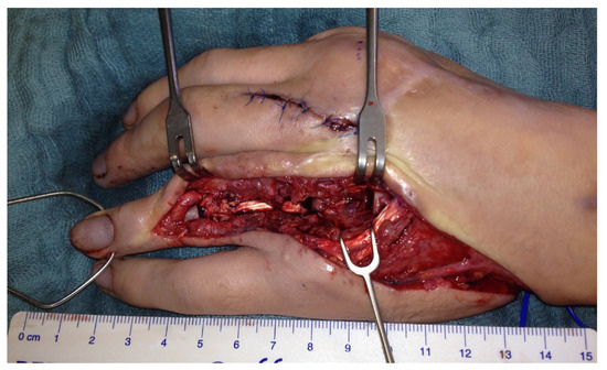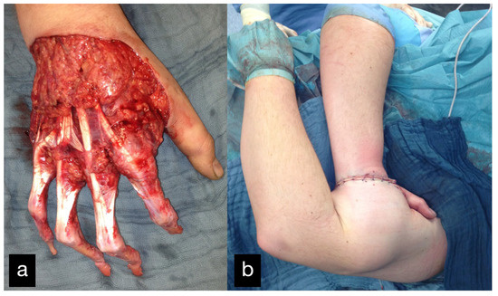 - Louis, D.S.; Jebson, P.J.; Graham, T.J. Amputations. In Green’s Operative Hand Surgery, 4th ed.; Green, D.P., Hotchkiss, R.N., Pederson, W.C., Eds.; Churchill Livingstone: New York, NY, USA, 1999; pp. 58–68. [Google Scholar]
