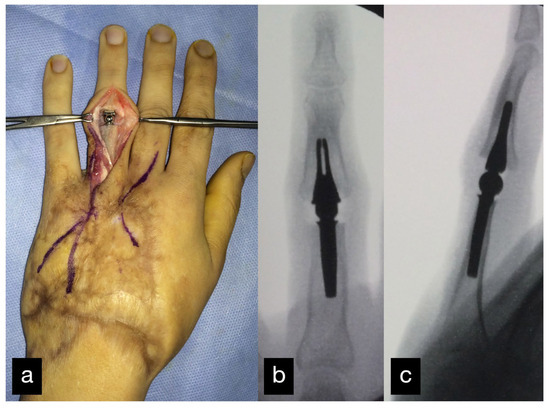 - Riggs, S.A.; Cooney, W.P. Arthroplasty for the traumatised digital joint. J. Hand Surg. 1983, 8, 215. [Google Scholar]