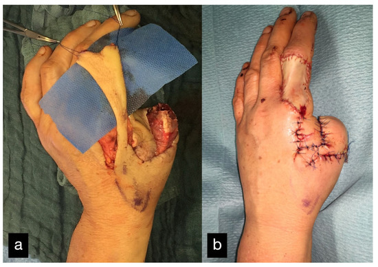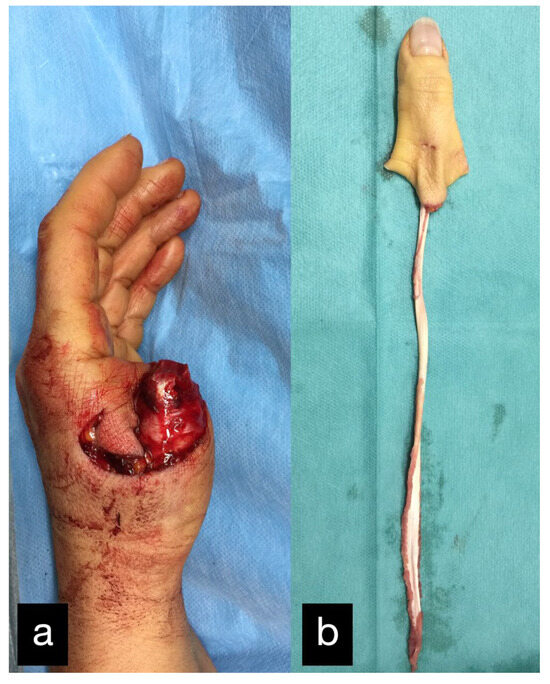 - del Piñal, F. Extreme Thumb Losses: Reconstructive Strategies. Plast. Reconstr. Surg. 2019, 144, 665–677. [Google Scholar] [CrossRef] [PubMed]