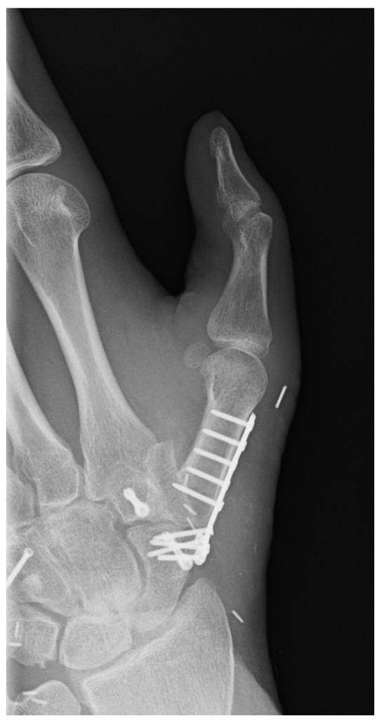 - Calderazzi, F.; Menozzi, M.; Nosenzo, A.; Galavotti, C.; Pogliacomi, F.; Ceccarelli, F. Single ray amputation in traumatic injury of the hand: Review of literature. Acta Biomed. 2018, 90, 14–23. [Google Scholar] [CrossRef] [PubMed] [PubMed Central]