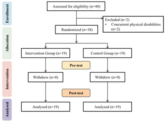 | Variables | Control Group (n = 19) | Intervention Group (n = 19) | Total (n = 38) |