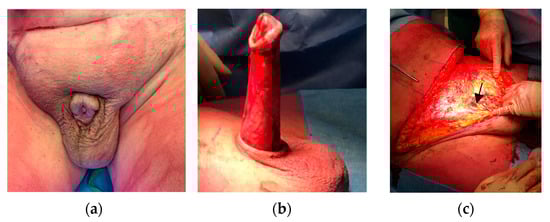 - Monn, M.F.; Socas, J.; Mellon, M.J. The Use of Full Thickness Skin Graft Phalloplasty During Adult Acquired Buried Penis Repair. Urology 2019, 129, 223–227. [Google Scholar] [CrossRef]