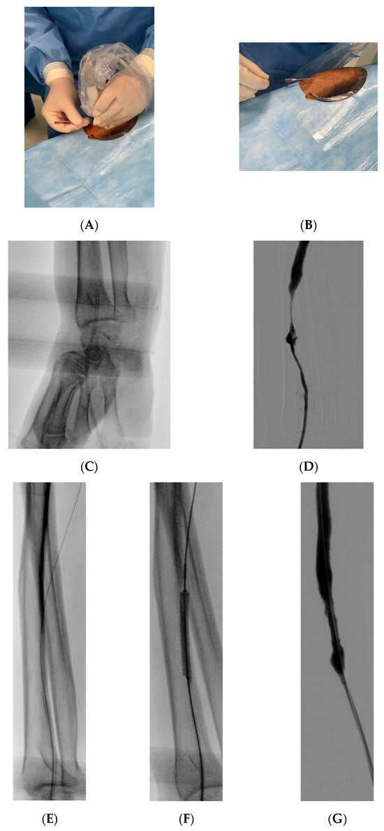 - Stoner, M.C.; Calligaro, K.D.; Chaer, R.A.; Dietzek, A.M.; Farber, A.; Guzman, R.J.; Hamdan, A.D.; Landry, G.J.; Yamaguchi, D.J. Society for Vascular Surgery Reporting Standards of the Society for Vascular Surgery for Endovascular Treatment of Chronic Lower Extremity Peripheral Artery Disease. J. Vasc. Surg. 2016, 64, e1–e21. [Google Scholar] [CrossRef]