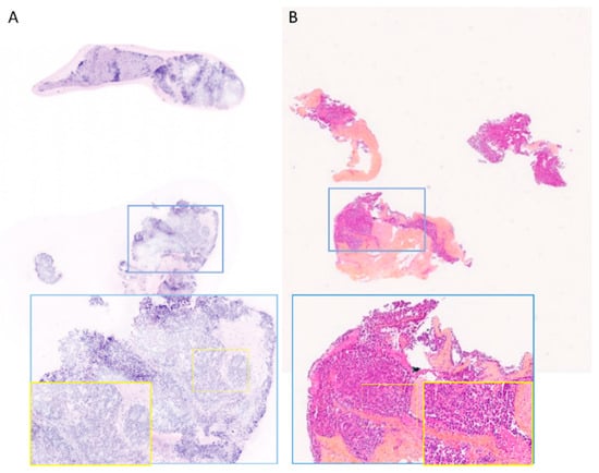 - Kehl, S.; Mechler, C.; Menton, S.; Weiss, C.; Wasgindt, S.; Sütterlin, M.; Trunk, M. Touch Imprint Cytology of Core Needle Biopsy Specimens for the Breast and Quick Stain Procedure for Immediate Diagnosis. Anticancer Res. 2014, 34, 153–157. [Google Scholar] [PubMed]