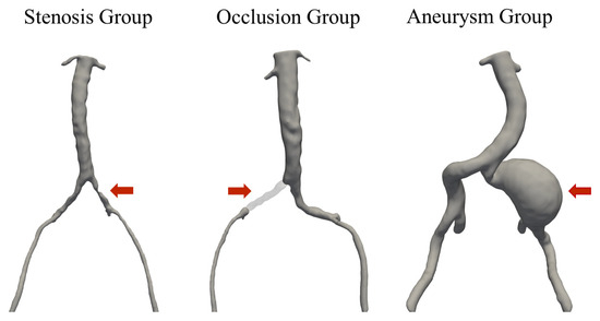 - Parker, L.P.; Powell, J.T.; Kelsey, L.J.; Lim, B.; Ashleigh, R.; Venermo, M.; Koncar, I.; Norman, P.E.; Doyle, B.J. Morphology and Hemodynamics in Isolated Common Iliac Artery Aneurysms Impacts Proximal Aortic Remodeling. Arterioscler. Thromb. Vasc. Biol. 2019, 39, 1125–1136. [Google Scholar] [CrossRef] [PubMed]
