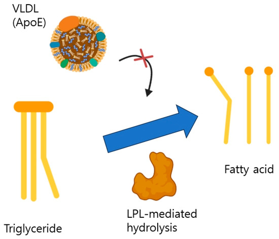 - Whitacre, B.E.; Howles, P.; Street, S.; Morris, J.; Swertfeger, D.; Davidson, W.S. Apolipoprotein E content of VLDL limits LPL-mediated triglyceride hydrolysis. J. Lipid Res. 2022, 63, 100157. [Google Scholar] [CrossRef] [PubMed]