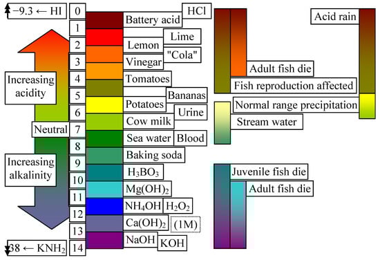 - U.S Geological Survey. pH—Water Properties. The USGS Water Science School. 2 December 2016. Available online: https://water.usgs.gov/edu/ph.html (accessed on 19 November 2024).