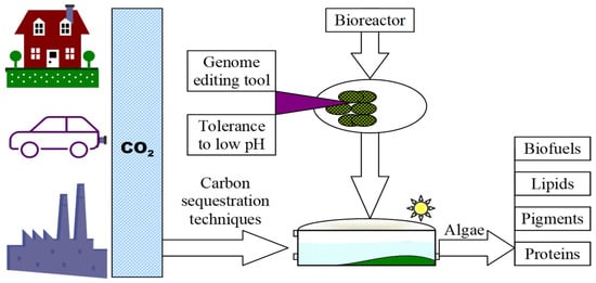 - Paul, V.; Chandra Shekharaiah, P.S.; Kushwaha, S.; Sapre, A.; Dasgupta, S.; Sanyal, D. Role of Algae in CO2 Sequestration Addressing Climate Change: A Review. In Renewable Energy and Climate Change. Smart Innovation, Systems and Technologies; Deb, D., Dixit, A., Chandra, L., Eds.; Springer: Singapore, 2020; Volume 161. [Google Scholar] [CrossRef]