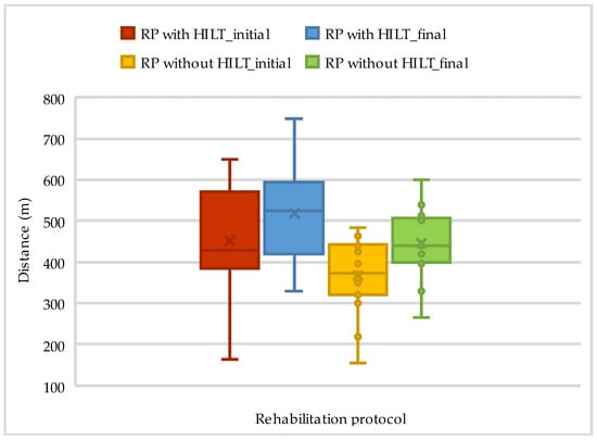 The evolution of walking distance on 6MWT according to rehabilitation protocol.