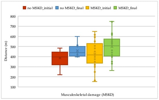 The evolution of walking distance on 6MWT according to musculoskeletal damage.