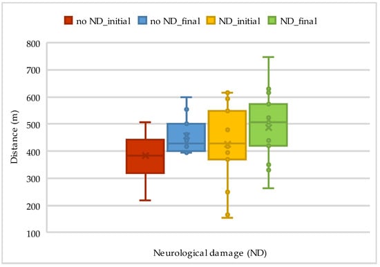 Out of 33 patients, 15 had neurological damage, which influenced the results of both the 6MWT and Borg exertion, as presented in Table 8 and Figure 7 below.