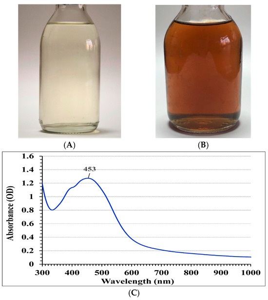 3.2. Biosynthesis and Characterization of AgNPs
