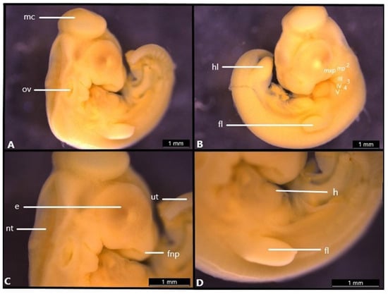 - Muthukkarruppan, V.R.; Kanakambika, P.; Manickavel, V.; Veeraraghavan, K. Analysis of the development of the lizard, Calotes versicolor. I. A series of normal stages in the embryonic development. J. Morphol. 1970, 130, 479–490. [Google Scholar] [CrossRef]