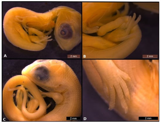 - Skawiński, T.; Skórzewski, G.; Borczyk, B. Embryonic development and perinatal skeleton in a limbless, viviparous lizard, Anguis fragilis (Squamata: Anguimorpha). PeerJ 2021, 9, e11621. [Google Scholar] [CrossRef]