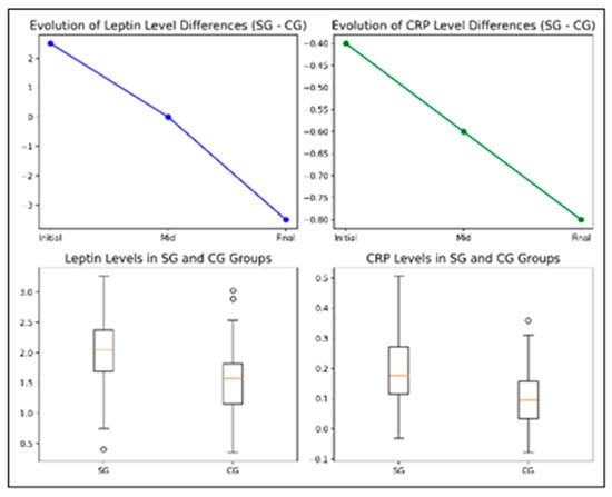 - Leptin levels: Significant differences were observed in leptin levels (p = 0.0164), indicating variations in inflammation and adiposity between the groups at the start of the study.