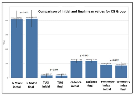 | The Wilcoxon signed-rank test results indicate that there is no significant difference between the mean and median values for 6 MWD and cadence in the CG group, as all p-values are 1.0. This suggests that the data distribution for these parameters is relatively symmetric, and both mean and median can be used for interpretation. | ||||||