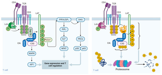 - Nath, P.R.; Anto, N.P.; Braiman, A.; Isakov, N. Termination of TCR-mediated activation signals is regulated by CrkII-dependent Cbl-mediated ubiquitination and degradation of C3G. Immunobiology 2023, 228, 152342. [Google Scholar] [CrossRef]