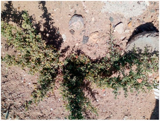 Halophytes, salt-tolerant plants, are abundant producers of secondary metabolites with high economic value; their quantity and structural diversity frequently outweigh that of glycophytes. These substances are valuable for pharmacognosy and functional foods because they can act singly or in combination []. Despite their potential, many halophyte applications are still in the research and development phase. The genus Nitraria comprises of salt-tolerant shrubs that thrive in both saline and dry conditions. One of its species, Nitraria retusa Asch, is classified under the Nitrariaceae family []. This broad family, which includes shrubs, trees, and herbs, is made up of 27 genera and 270 species. Nitraria species are well known for their resilience and global distribution, especially in the arid and salt marshy regions of central Asia [].