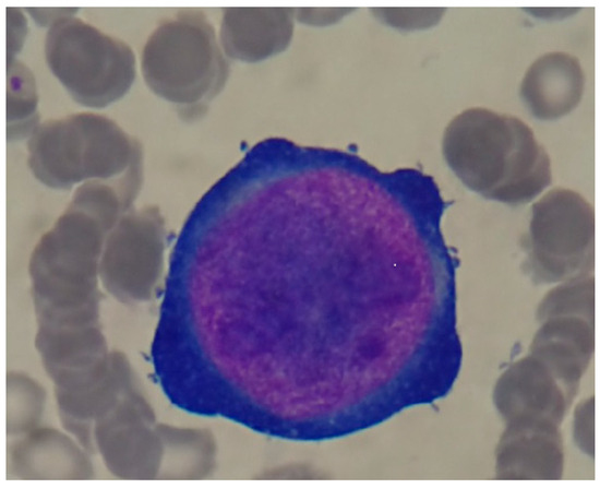Giant proerythroblasts [12] (https://www.researchgate.net/figure/Giant-proerythroblasts-with-intranuclear-eosinophilic-inclsionbodies-like-nucloli_fig1_376949624, Accessed on 5 December 2024).