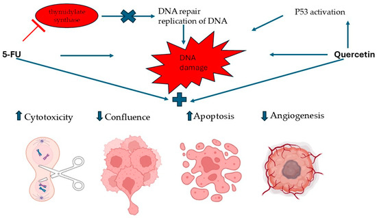 The possible mechanism of action of 5-FU, QUE, and their combination on A375 cells is presented in Figure 9.