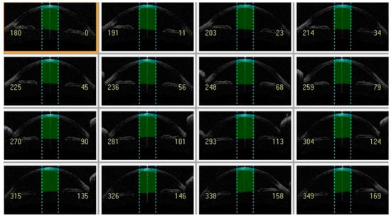 Thanks to the three-dimensional image of the anterior segment, the calculations of anterior chamber depth (ACD) and anterior chamber volume (ACV) were also performed. Data were collected by the same examiner (NP) and analyzed independently by an additional operator (SV).