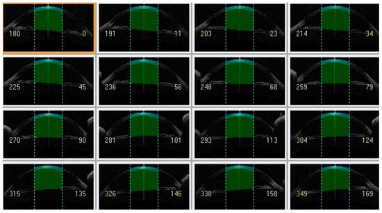 - Fukuda, R.; Usui, T.; Miyai, T.; Mori, Y.; Miyata, K.; Amano, S. Corneal thickness and volume measurements by swept source anterior segment optical coherence tomography in normal subjects. Curr. Eye Res. 2013, 38, 531–536. [Google Scholar] [CrossRef] [PubMed]