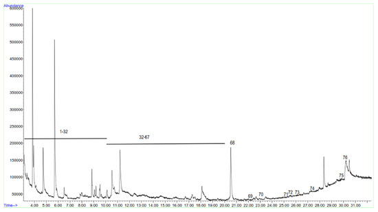 Representative total ion chromatogram of fish soup volatile organic compounds.
